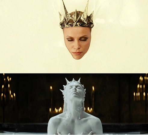Released on 1 June 2012, Rupert Sanders' Snow White and the Huntsman was touted as a decidedly dark and gritty incarnation of the beloved classic fairy tale Snow White. While some may assume that Snow White and the Huntsman is intended for children, the film is actually rated PG (parental guidance) as opposed to G (good for all ages), and an explicit warning advises that the picture is "not recommended for young children." Sanders' Snow White and the Huntsman, then, communicates with a more mature audience than its predecessor.